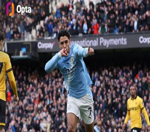 英超第23轮,曼城主场对阵狼队,上半场马尔穆什破门为曼城取得领先,至此,马尔穆什曼城生涯英超8粒进球均在阿提哈...